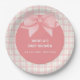 Pink Gingham Plaid Bow Baby Shower Paper Plate