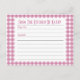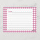 Pink Gingham Recipe Card. Available in many colours. Create a mix n match set. Text on the card is optional.