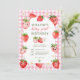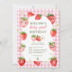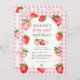 Pink Gingham Strawberry Berry First Birthday Invitation