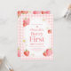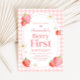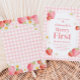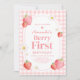 Pink Gingham Strawberry Berry First Birthday Party Invitation