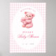 Pink Gingham Teddy Bear Neutral Baby Shower Poster