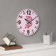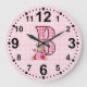Pink Gingham Teddy Bear with Letter B Bold Numbers Large Clock