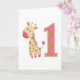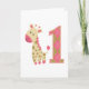 Pink Giraffe First Birthday Card