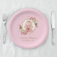 Pink Girl Baptism Photo Orchids Floral Geometric Paper Plate