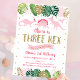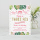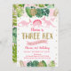Pink Girl Dinosaur THREE REX Birthday Invitation