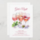 Beautiful watercolor illustration of a pink wine glasses for your Girl's Night.