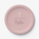 Pink Girly Baby Girl Calligraphy Baptism Paper Plate
