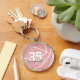 This cute girly basketball keychain features a pink, digitally textured basketball graphic with overlying dark grey and white text - easily customise this keychain with the player's name in a signature style font atop the player's jersey number in a varsity letter style font - by katz_d_zynes