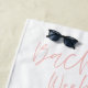 Pink girly champagne cocktail bachelorette weekend vacation watching beach towel design