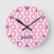 Pink Girly Dots Black Script Name Wall Clock