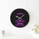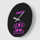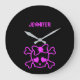 Pink girly emo skull with bow large clock