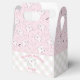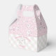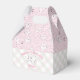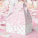 This is an adorable, girly Halloween pink 1st Birthday Favour Box. The background features a cute hand-drawn pattern of ghosts, bats, stars and moons on a pastel pink background. The front and back feature a cute ghost on a pink & green gingham pattern personalised with name and date.