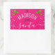 Pink & Girly "Love, Santa" Custom Name Holiday Rectangular Sticker