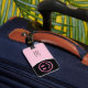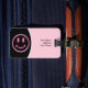 Pink girly smile face luggage tags for girls who love pink things with text you can personalise. Easily find your bag at the gym, while you are travelling or on the bus with your own pretty pink style. Make it personal by adding your name and address. Best ID tags for your luggage, gym bag, school bag, or for anyone who loves cute girly things.