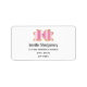 Address labels with a glitzy shiny bow with gold outline and a faceted pink gemstone in the centre. Feminine luxury glam style.