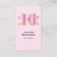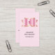 Business cards with a glitzy shiny bow with gold outline and a faceted pink gemstone in the centre. Feminine luxury glam.
