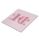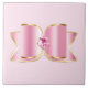 Ceramic tile with a glitzy shiny bow with gold outline and a faceted pink gemstone in the centre. Feminine luxury glam style.