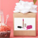 Pink Glam Lipstick & Nail Polish Beauty Themed Rectangular Sticker