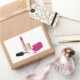 Thank You stickers with a glam style design. Hot pink lipstick and nail polish. The nail polish bottle is open, laying on its side, with drips of nail polish coming out.