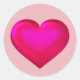 This round sticker features a shapely heart with a pink glass-like appearance on a pink background. The pink glass heart sticker works well as a celebratory addition to wine bottles, candies, gift bags or other for engagement parties, baby or bridal showers, rehearsal dinners, weddings, and anniversary or valentine celebrations.