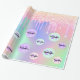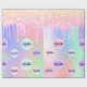 A girly and trendy wrapping paper for a 21st birthday. An iridescent background with unicorn and rainbow colours in pink, purple, rose gold, mint green. Decorated with faux glitter drips in rose gold, pink, purple. Personalise and add a name and age 21 inside the multicolored circle frames.