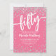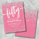 Introducing a sassy and stylish 50th birthday party invitation, perfect for celebrating this milestone with flair. The vibrant design features a bright pink background with silver glitter confetti, adding a touch of sparkle and festivity. At the top, "Fifty" is prominently displayed in bold calligraphy, setting the tone for an unforgettable celebration. The text combines script and simple modern fonts in all-white, creating a striking contrast against the hot pink backdrop. The glitter continues on the back, adding an extra touch of shine to the overall design. This invitation is ideal for celebrating 50 years old with a fun and chic vibe. Both the background and font colours can be customised to fit your style. Hot Pink Silver Glitter 50th Birthday Party Invitation Elegant Fun Script Fifty Years Old Please note the glitter is faux, with no foil or shimmer.