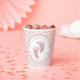 Serve drinks in sweet style with these personalised pink baby shower paper cups, featuring faux glitter baby footprints and a coordinating diagonal stripe border. Perfect for a girl baby shower or soft pink party theme, these printed cups can be customised with the honoree’s name and shower date. A charming and functional way to tie your table décor together.