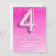 Pink Glitter Balloon 4th Birthday for Girls Invitation