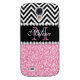 PINK GLITTER BLACK CHEVRON MONOGRAMMED Case-Mate SAMSUNG GALAXY CASE