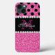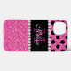 Pink Glitter Black Polka Dots Monogrammed Case-Mate iPhone Case