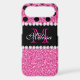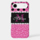 Pink Glitter Black Polka Dots Monogrammed Case-Mate iPhone Case