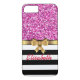 PINK GLITTER BLACk white stripe GOLD BOW MONOGRAM Case-Mate iPhone Case