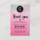 An elegant, modern, and chic pink glitter business thank you for your order card. Social media icons can be deleted or moved around by clicking "customise further" while personalising. Simple and modern with a script font. Change the colour of hearts and stars if you wish.
