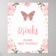 Pink Glitter Butterfly Drink Birthday Party Sign