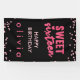Happy birthday banner for a Sweet Sixteen party in black and pink with faux glitter confetti.