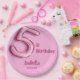Pink glitter cute balloon no.5 girly 5th birthday paper plate