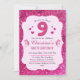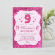 Pink glitter cute vibrant sparkling 9th birthday invitation
