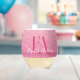Pink Glitter Drinkware Set with Name & Initials Stemless Wine Glass
