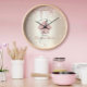 Make a stylish impression with this elegant, sophisticated, simple, and modern custom name wall clock. A sparkly, rose gold cupcake, script handwritten typography and glitter drips overlay a faux metallic champagne gold ombre background. Personalise with your full name, business, or other info. Your choice of a round or square clock face. Makes a chic, professional and fashionable statement in your kitchen or place of business.