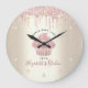 Pink Glitter Drips Cupcake Bakery Pastry Chef Gold Large Clock