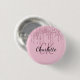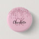 Pink glitter drips custom monogram name 3 cm round badge