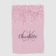 A pink background decorated with faux glitter drips, paint dripping look. Personalise and add a name, your monogram initials. The name is written with a hand lettered style script.