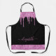 Personalised chic, elegant and girly black apron with pink faux glitter drips. Monogram with your name in a pink stylish trendy script with swashes.