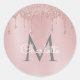 Pink Glitter Drips Monogram Elegant Girly Script Classic Round Sticker