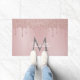 Pretty girly pink glitter drips, elegant script name, and grey monogram on a blush pink background doormat. Designed by Thisisnotme©