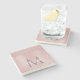 Pretty girly pink glitter drips, elegant script name, and grey monogram on a blush pink background coaster. Designed by Thisisnotme©
