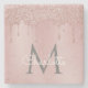Pink Glitter Drips Monogram Elegant Girly Script Stone Coaster