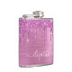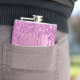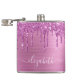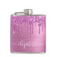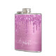 Monogrammed elegant and girly flask with pink faux glitter dripping down a pink faux brushed metallic background. Personalise with your name in a stylish trendy white script with swashes.