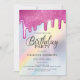 Pink Glitter Drips Rainbow Holographic Birthday Invitation