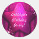 A glamourous birthday party stickers that features a fun glitter effect and flashy star for the inner diva in you! This stickers are hot pink, shiny, has vertical stripes and spotlights flashing downward. Perfect teenage girls or young adults that are celebrating their birthday and want to show off how they shine like a movie star.